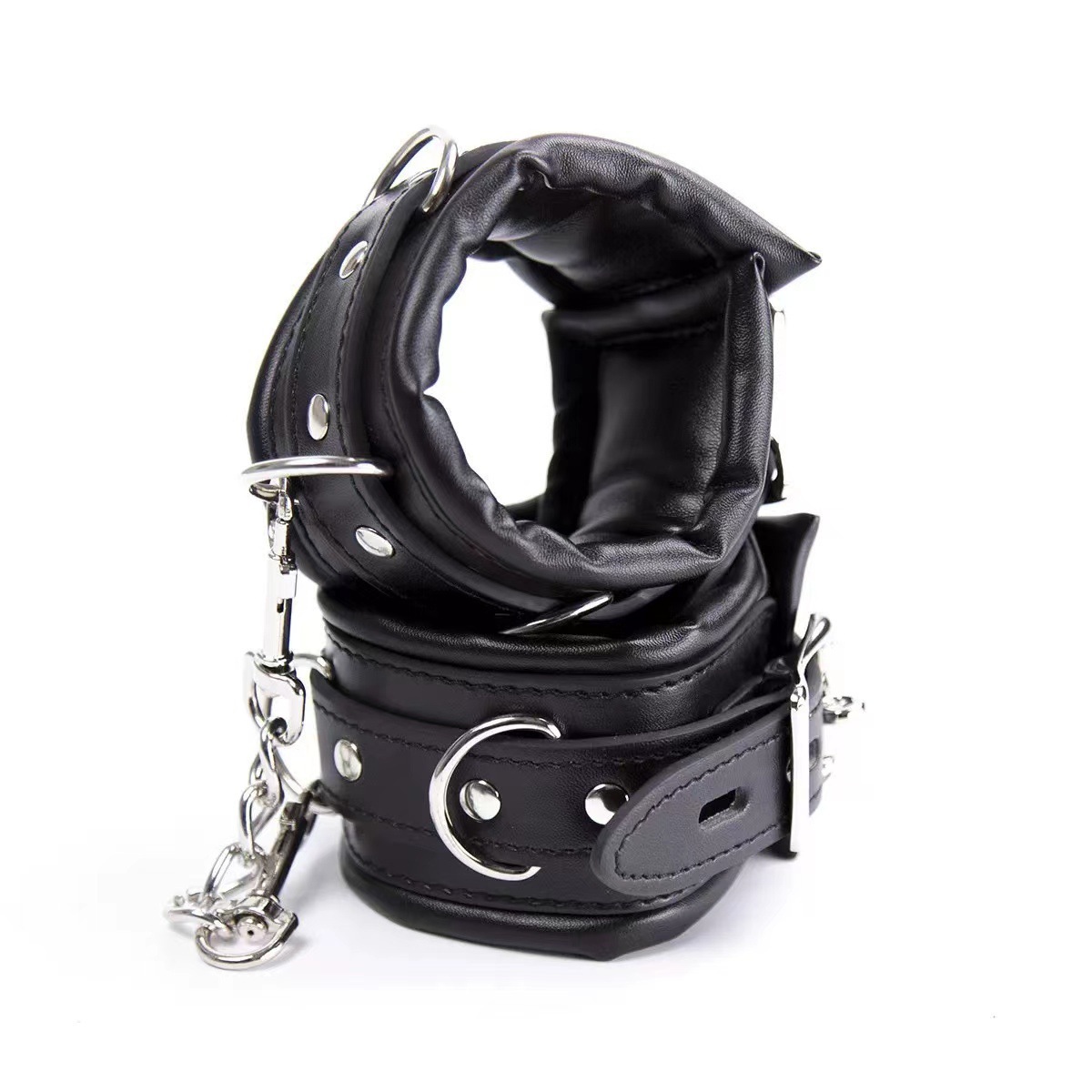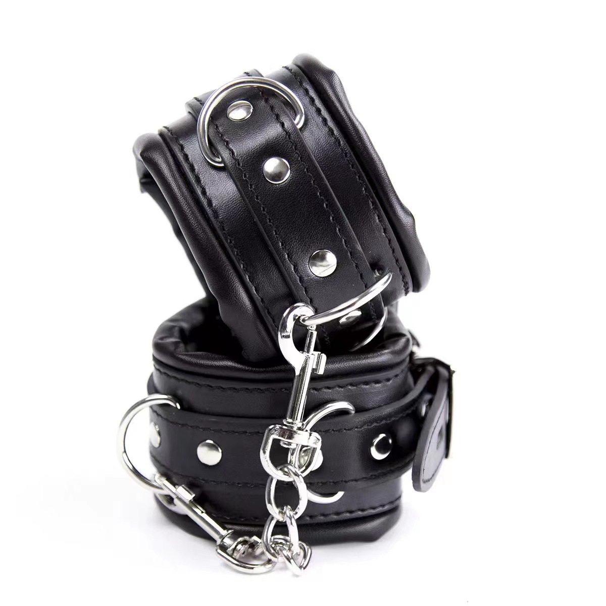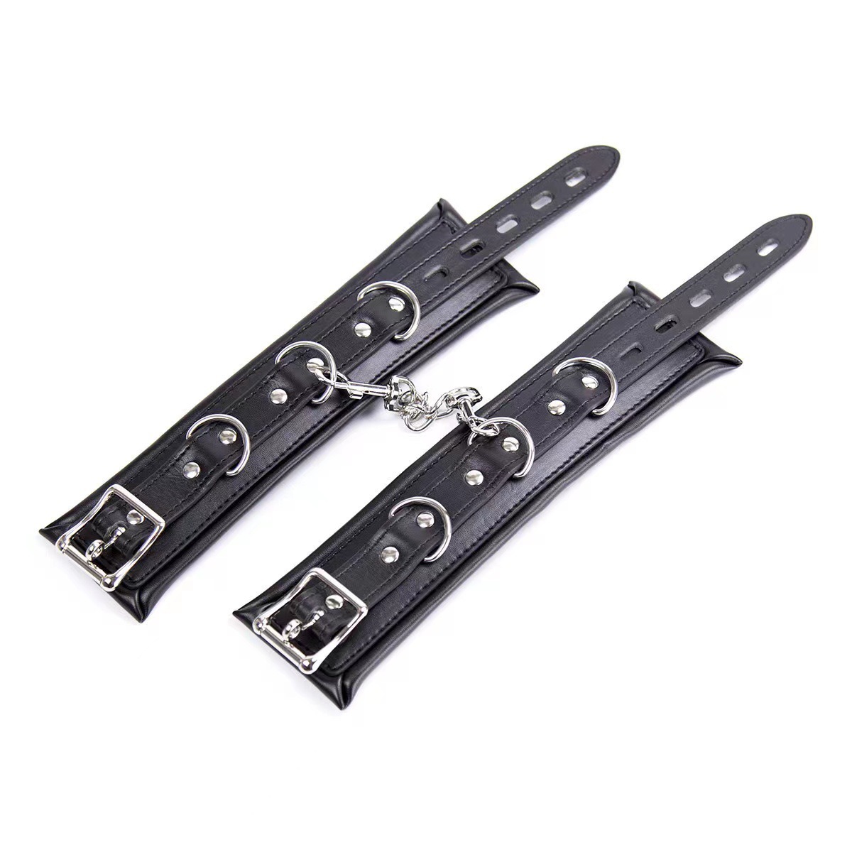 Spécifications : menottes noir et rouge chaîne de ceinture, footcuff noir et rouge chaîne de ceinture, menottes noir ruban chaîne, footcuff noir chaîne de ruban