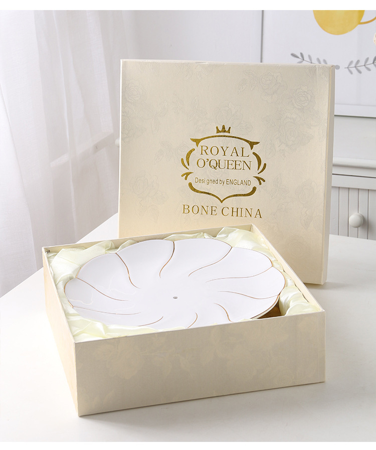 G : Assiette à 3 couches Vagues de l’océan avec couronne dorée, emballage cadeau