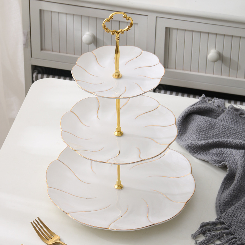A : Assiette à 3 couches en forme de vague océanique avec couronne dorée,