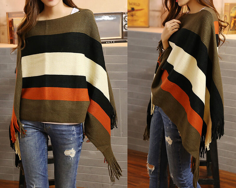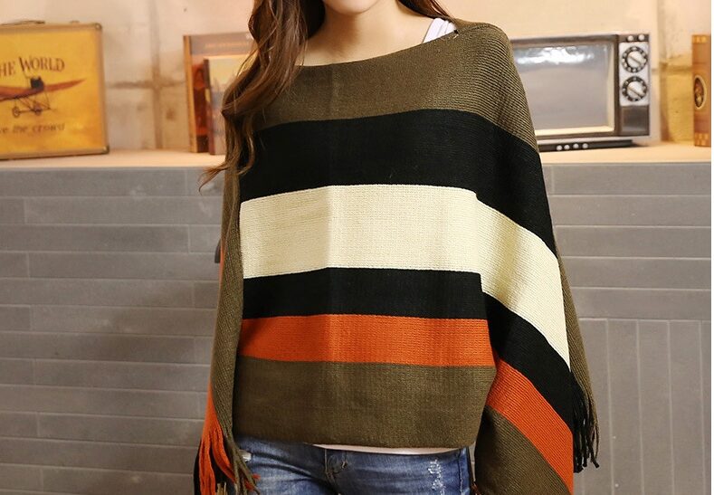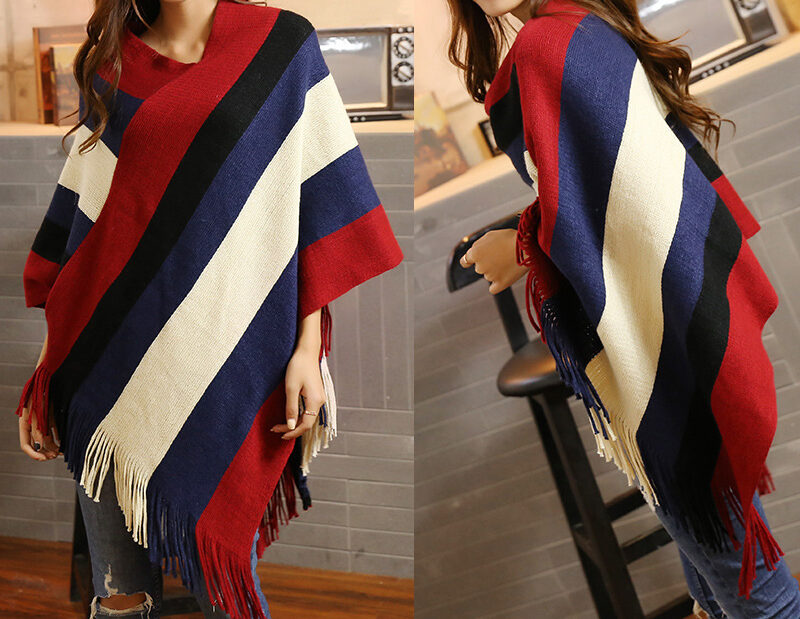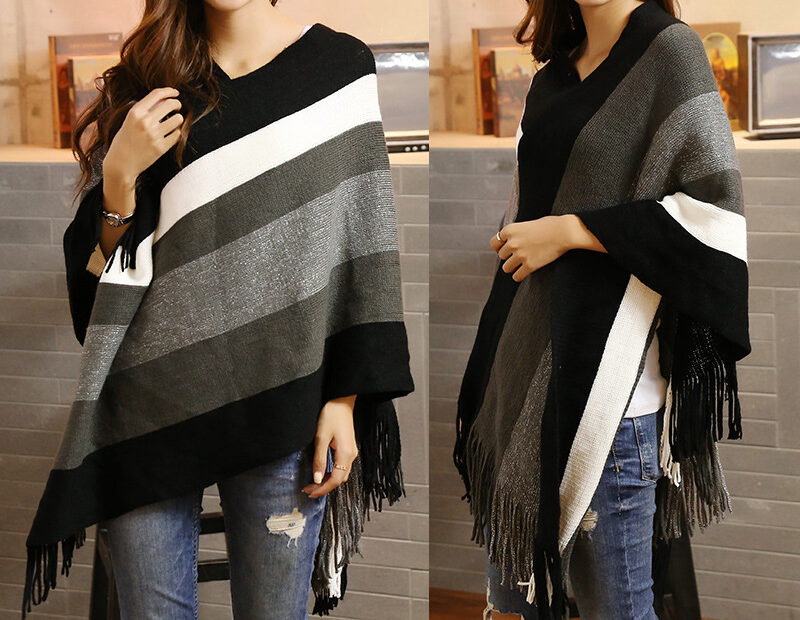 Cape rayée tricotée à la mode pour femmes