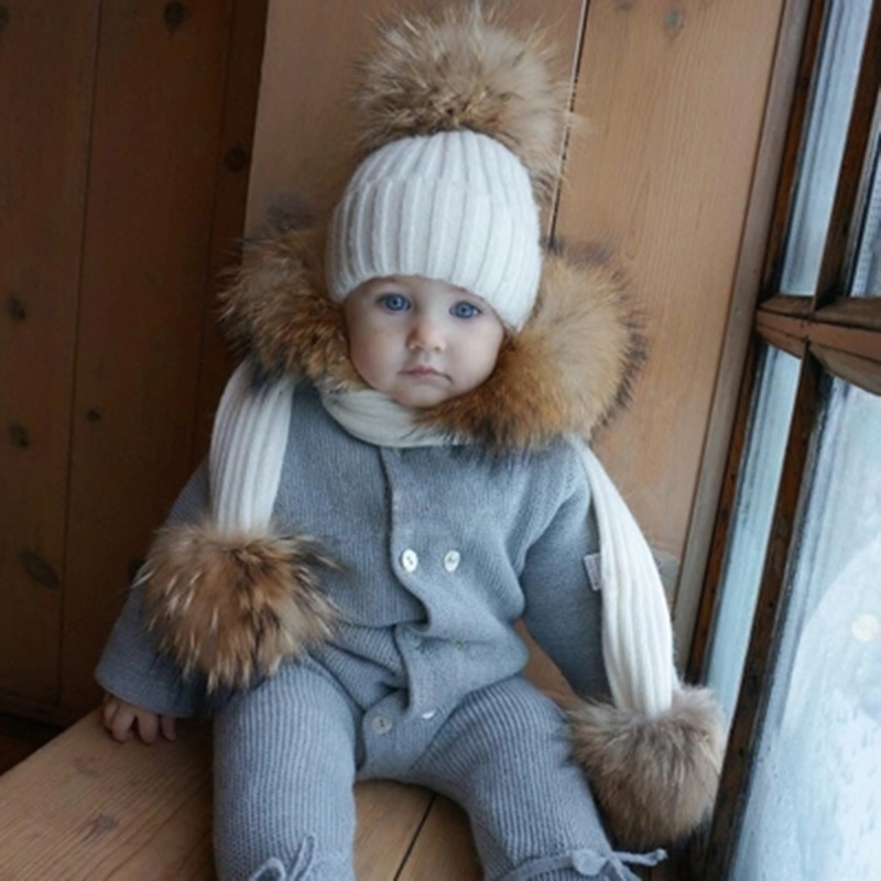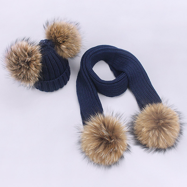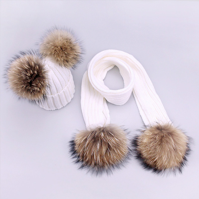 Home ECHARPES Ensemble d’écharpes Jeu de bonnets et d’écharpes en laine à double boules de poils pour enfants